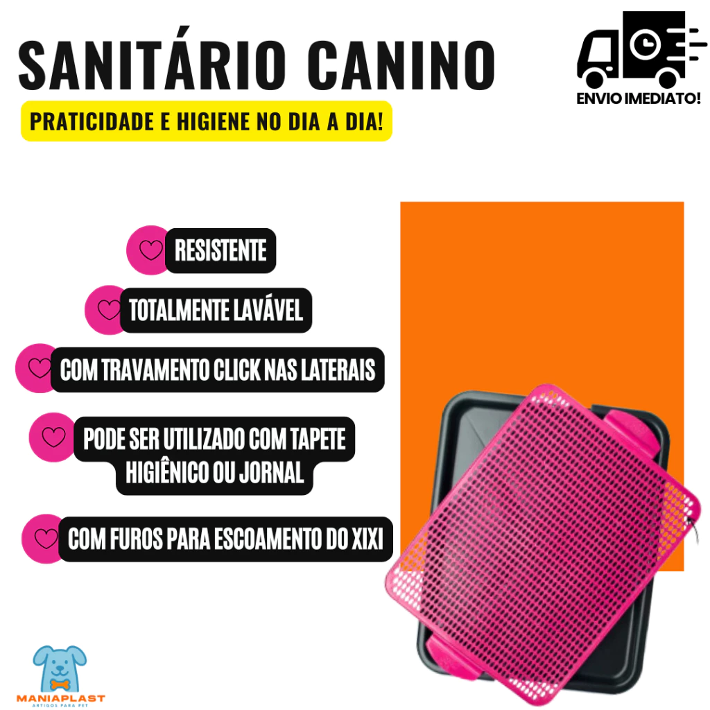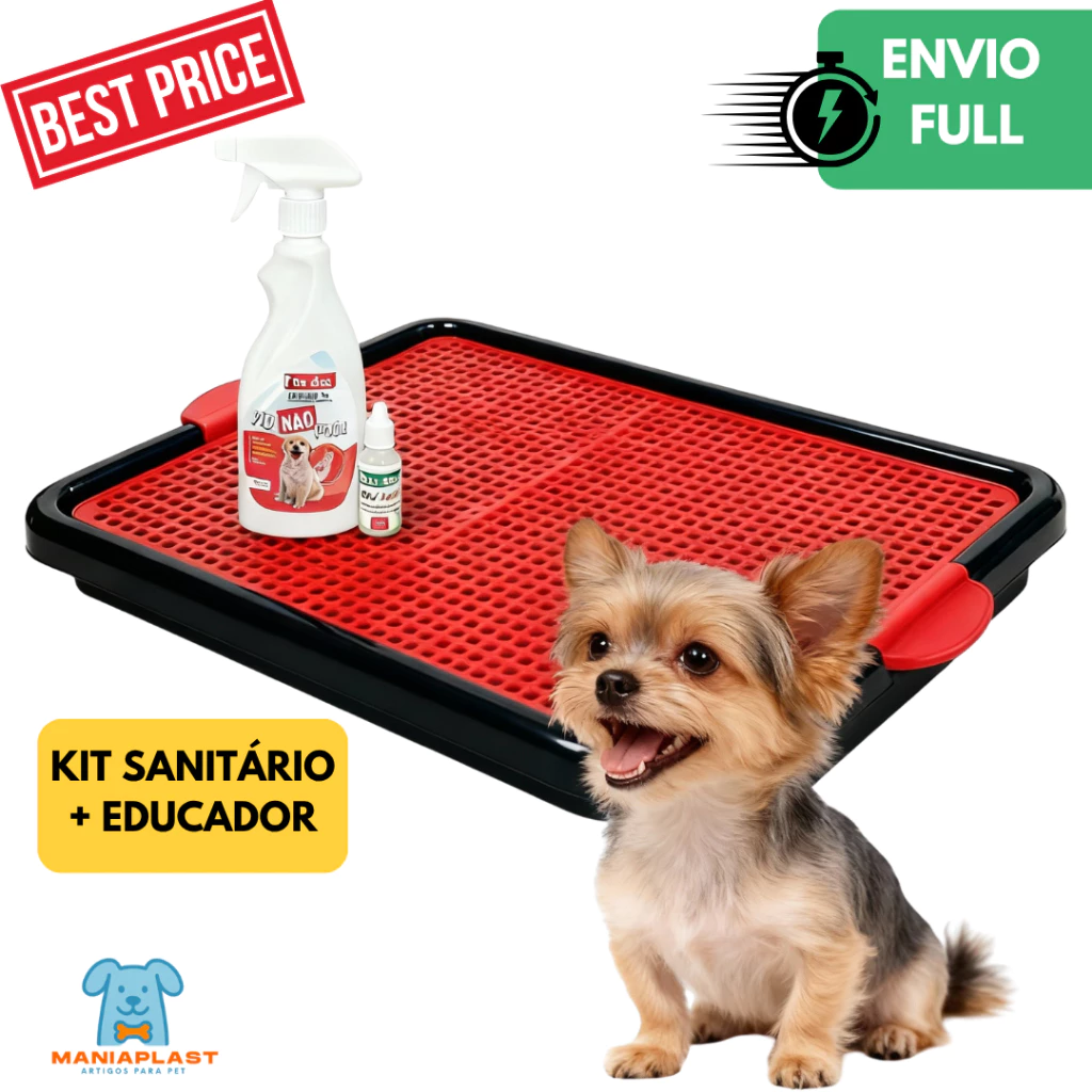 O Kit Sanitário Canino + Educador Xixi Sim e Xixi Não é a solução definitiva para ensinar seu cachorro a fazer xixi no lugar certo. Combinando um sanitário higiênico com grade removível e dois educadores profissionais, você transforma o adestramento em um processo rápido, seguro e sem bagunça.